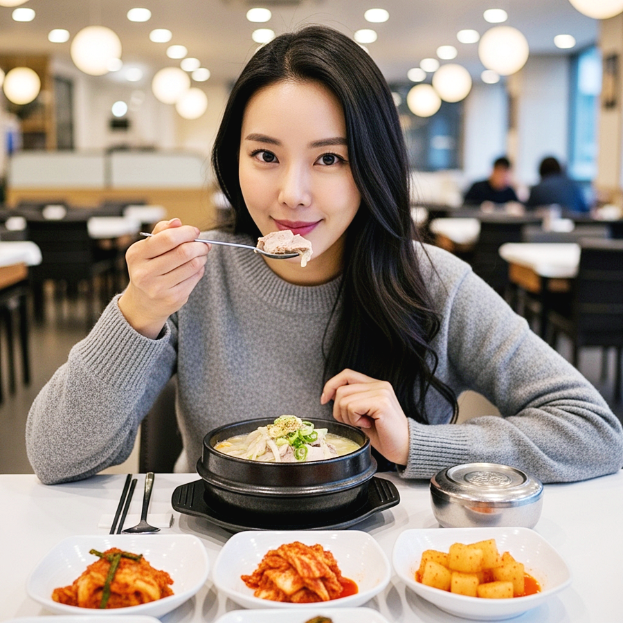 음식은 생각보다 빨리 나온다. 뚝배기에서 김이 모락모락 올라오는데, 국물 색부터가 진해 보이면서도 탁하지 않다. 한 숟갈 떠먹어보면 “아, 여기 잘하는 집이네”라는 말이 절로 나온다. 기름지게 무거운 스타일이 아니라 담백하면서 깊은 맛이 나는 국물이다. 잡내가 거의 느껴지지 않아서 평소 돼지국밥을 부담스러워하는 사람도 잘 먹을 것 같은 스타일. 그래서 이 집이 밀양 돼지국밥 맛집으로 계속 언급되는 듯하다.
