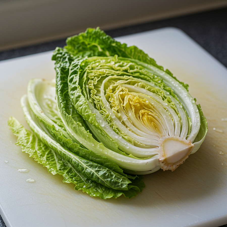 - 배추잎이 너무 크면 반으로 자르세요.